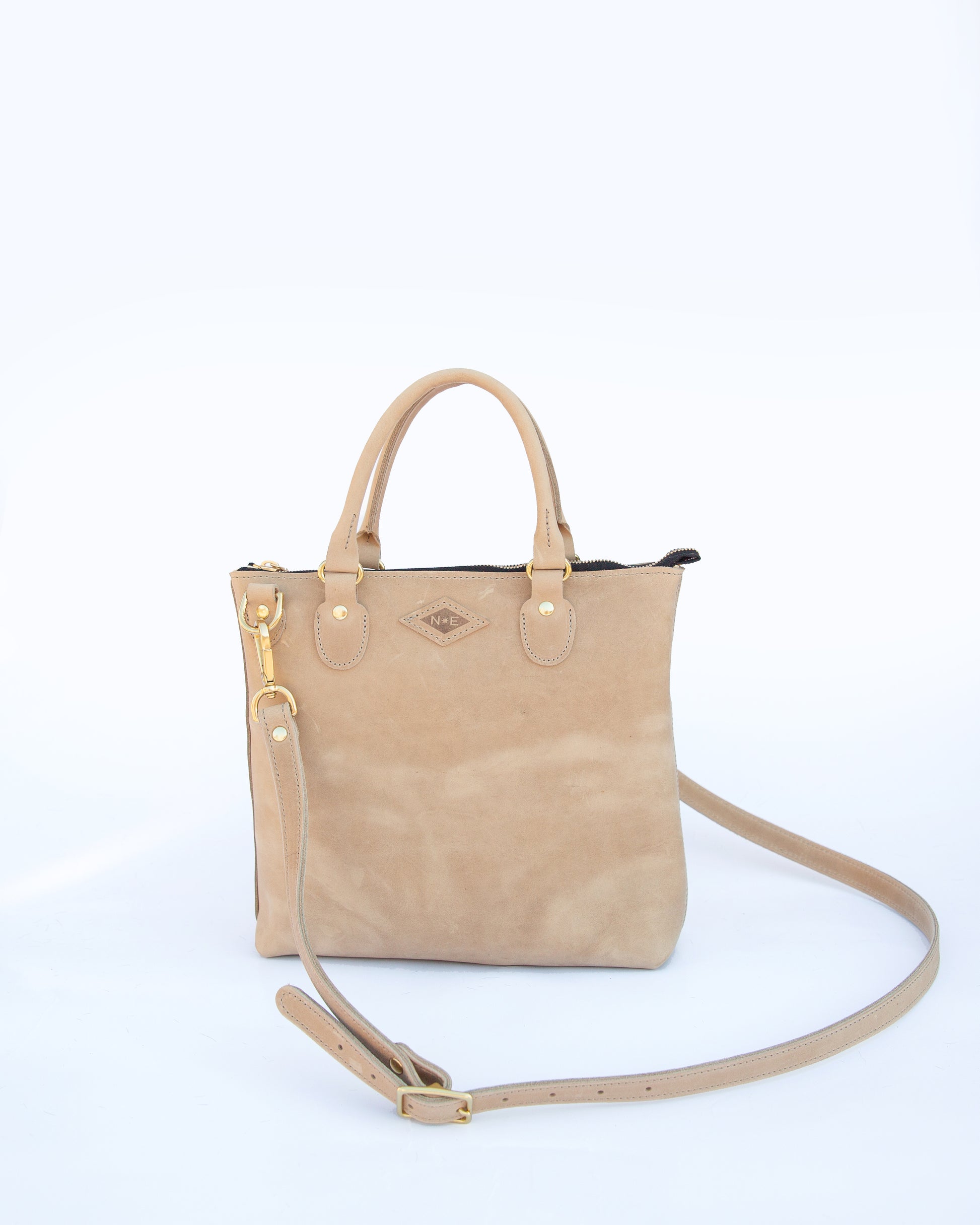 This bag can be carried by the handles or across the body and features (4) interior pockets. The zipper tail can be tucked or untucked depending on the wearer's preference.