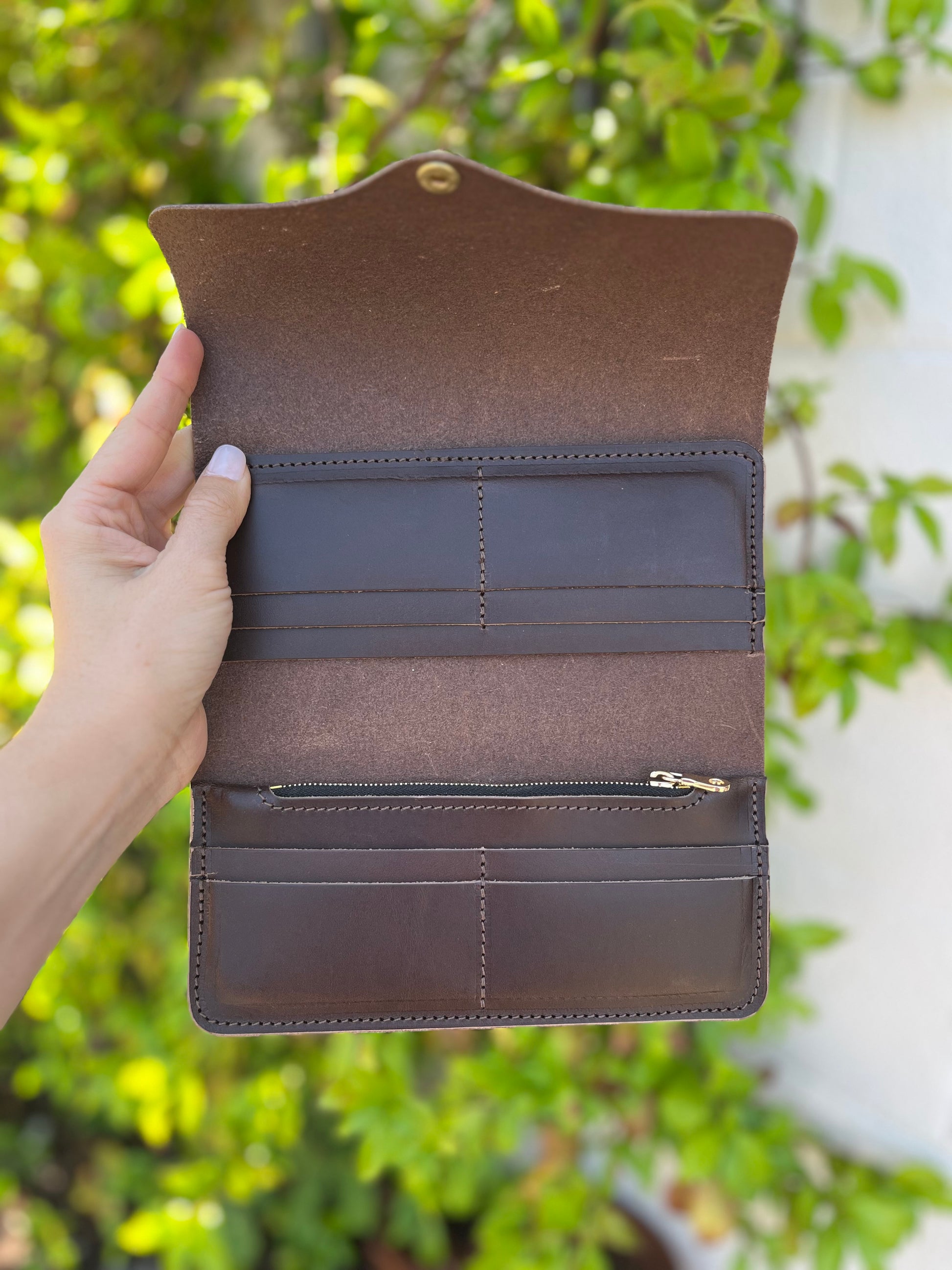 The Clutch wallet really can carry it all. From your credit cards to that one gift card you refuse to get rid of because there's still $3 left on it, its 16 pockets will house them all. Still paying the old fashion way? we even made a place for your cash and coins! This timeless design made in our veg-tanned leather will age with you for years to come.