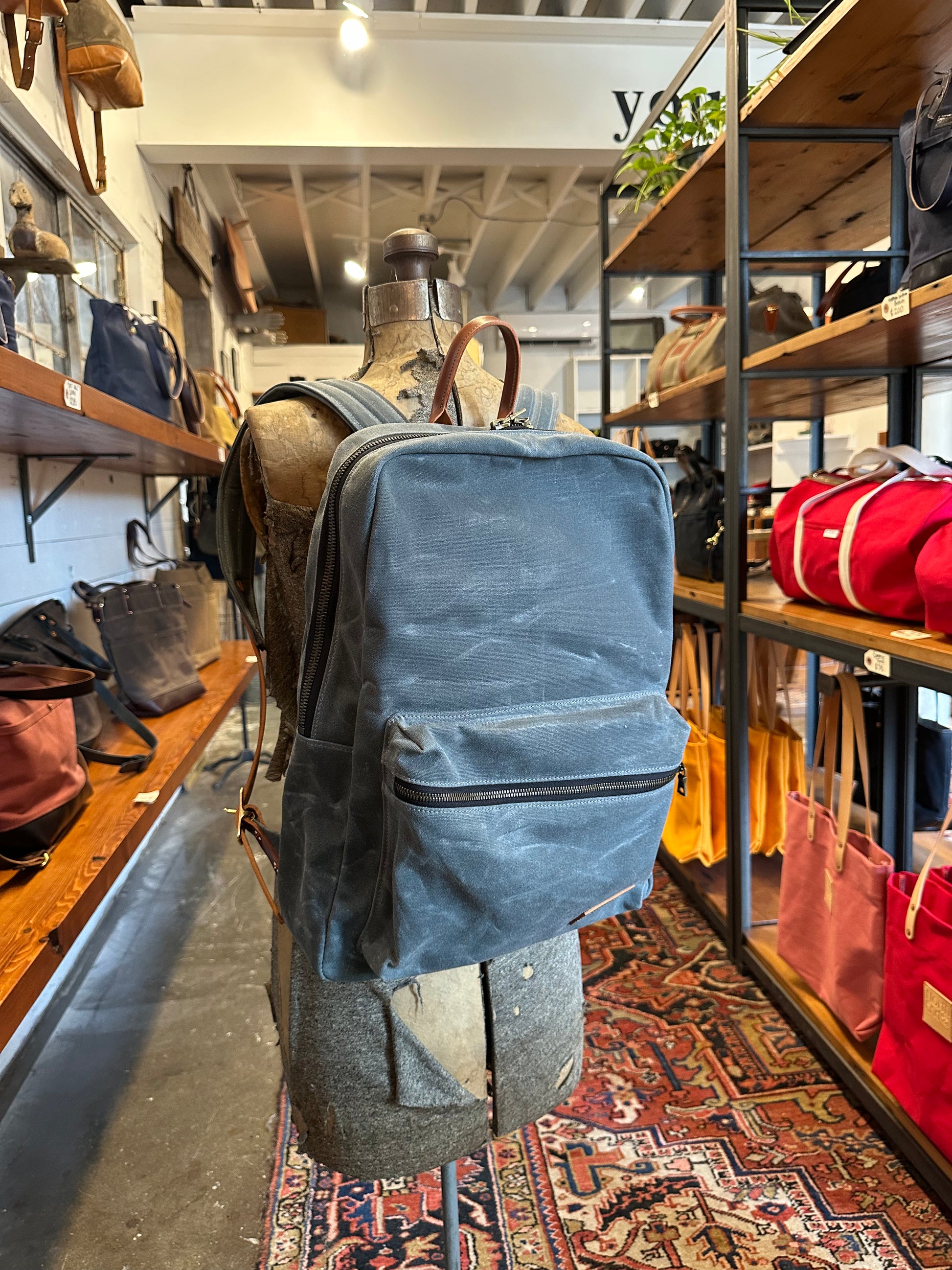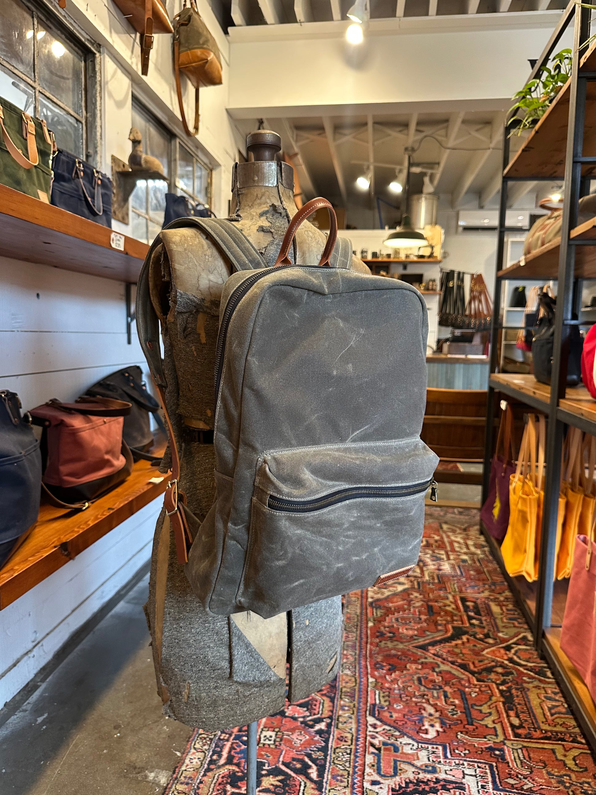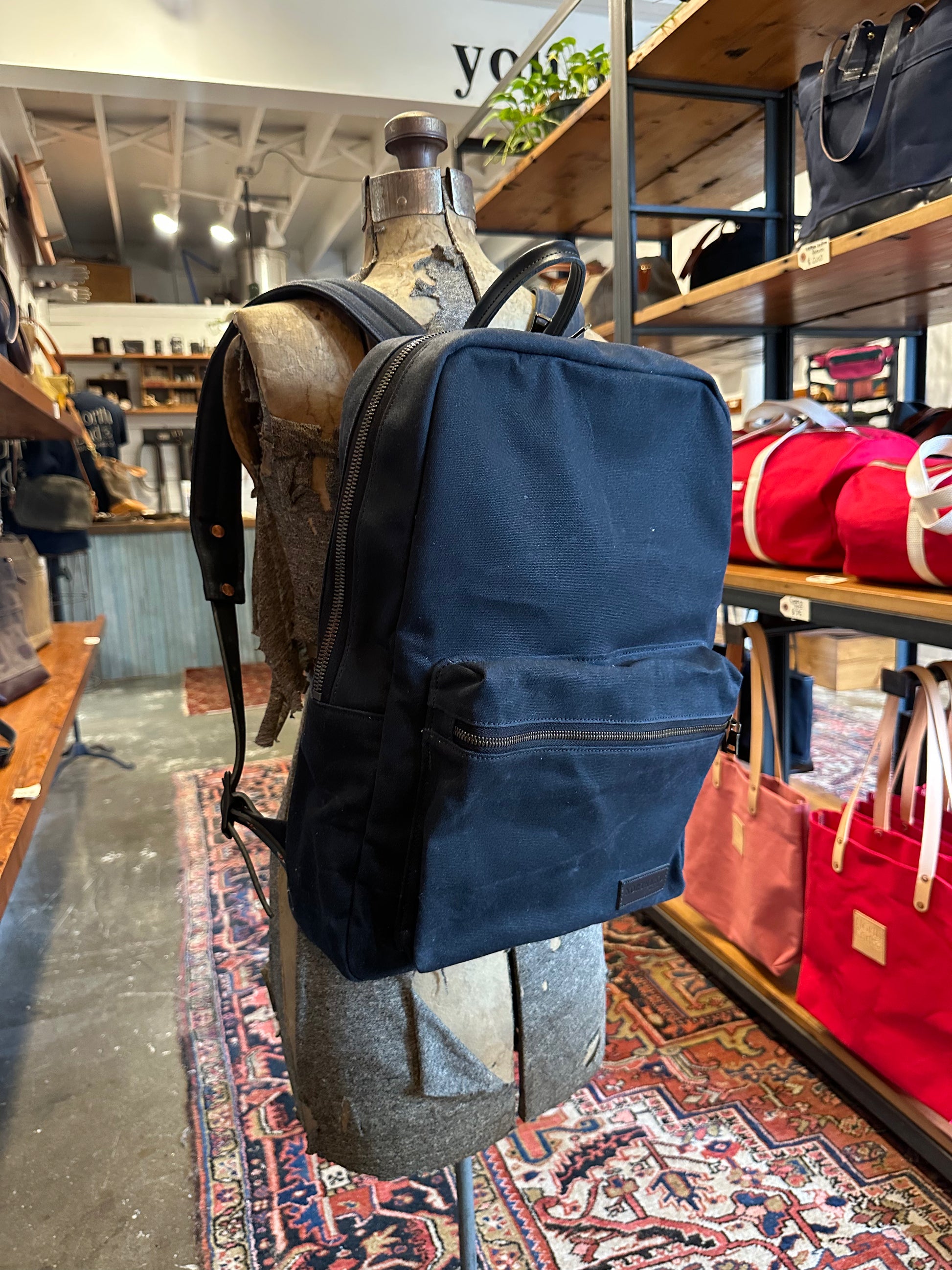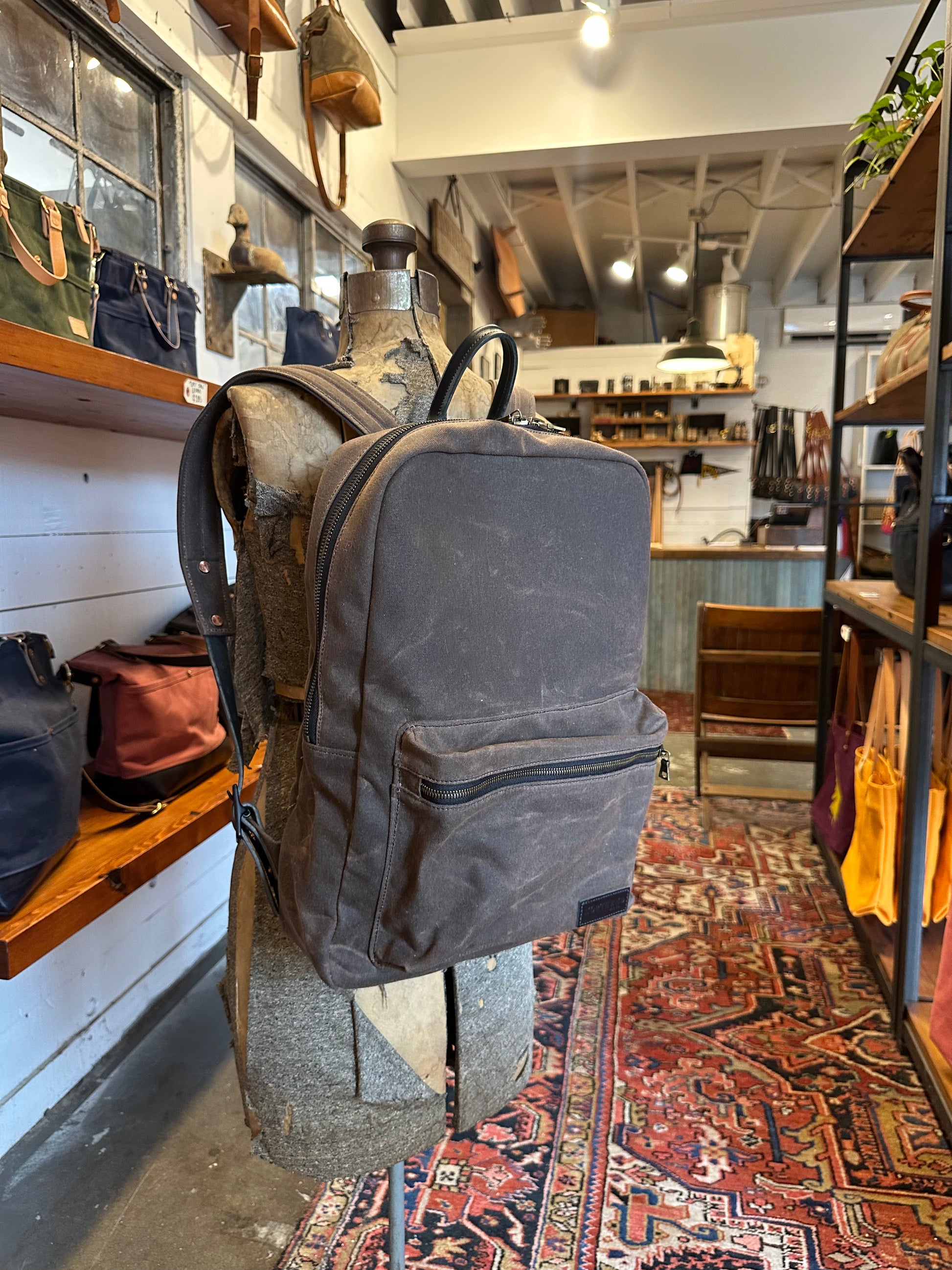 The Murray, our classic take on a backpack. This waxed canvas daily carry, is outfitted with an interior laptop sleeve and two storage pockets. With its leather carrying loop and large exterior bubble pocket, this pack supplies you with all the things you need while keep a simple-sleek design.